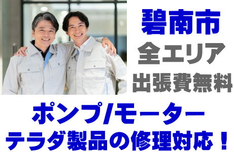 碧南市でTERADA製品(井戸ポンプ、水中ポンプ)の故障修理は寺田ポンプ取り扱い店の当店が即日対応いたします!