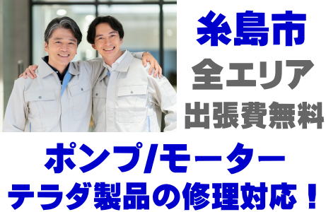 糸島市でTERADA製品(井戸ポンプ、水中ポンプ)の故障修理は寺田ポンプ取り扱い店の当店が即日対応いたします!