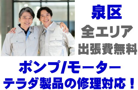 泉区でTERADA製品(井戸ポンプ、水中ポンプ)の故障修理は寺田ポンプ取り扱い店の当店が即日対応いたします!