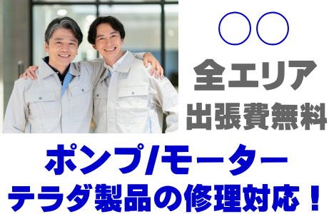 ○○でTERADA製品(井戸ポンプ、水中ポンプ)の故障修理は寺田ポンプ取り扱い店の当店が即日対応いたします!
